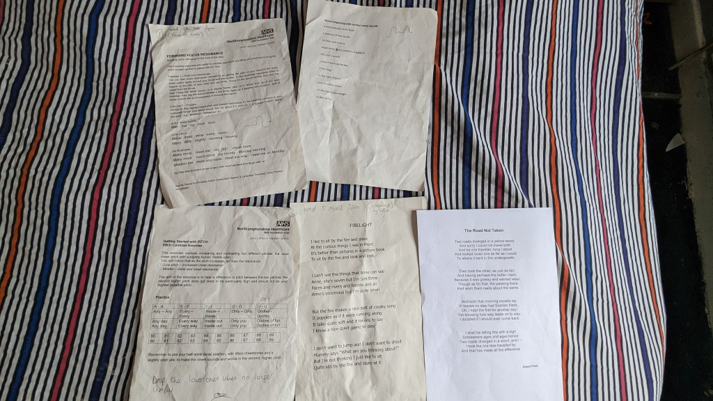 While I have been transitioning, I have been very self-conscious about speaking so much despite going against what I have been doing up to now mainly when serving customers or speaking to friends in the women’s changing rooms at work.