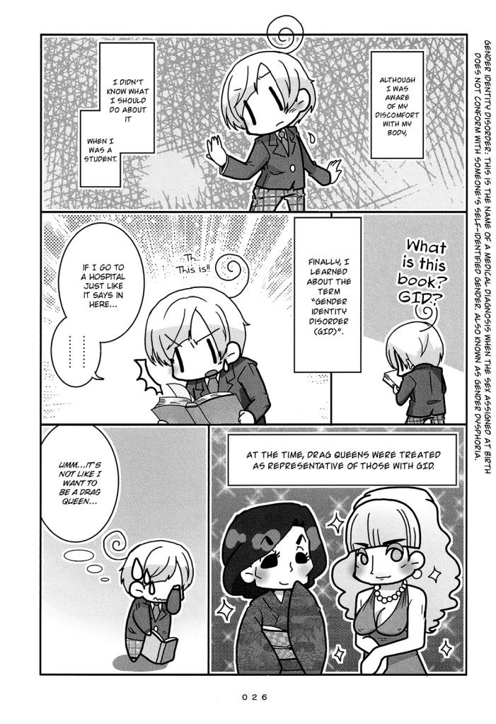 I was intrigued when I first read this book to give me a showing of the past from someone transgender, up to that point I only had my experiences and gender bending fantasy manga which isn’t really realistic.